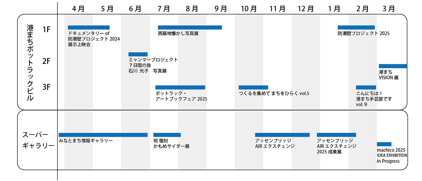 港まちづくり協議会の展覧会やイベント、関連事業のスケジュールを随時更新しています。