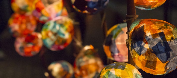 みんなと一緒につくる手づくりランプオブジェ「あかり玉ツリー」が港まちの協力店舗に飾られます。