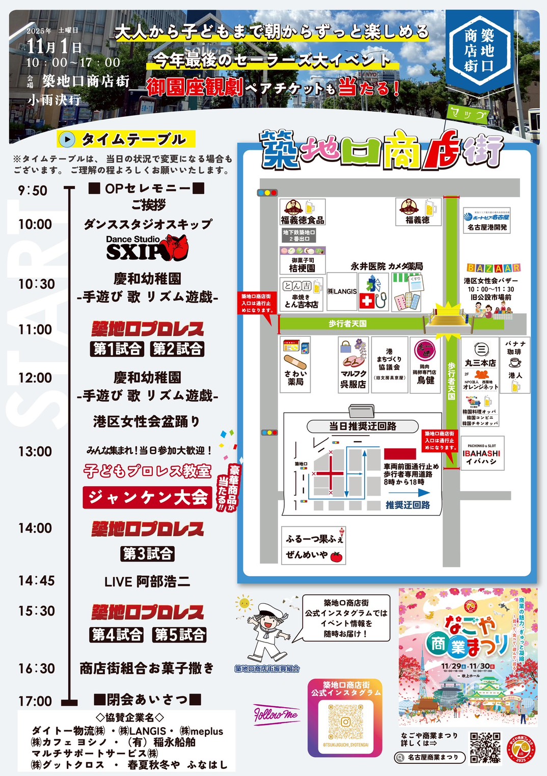 日 時|2025年11月8日(土)10:00〜。プロレスは11:00〜