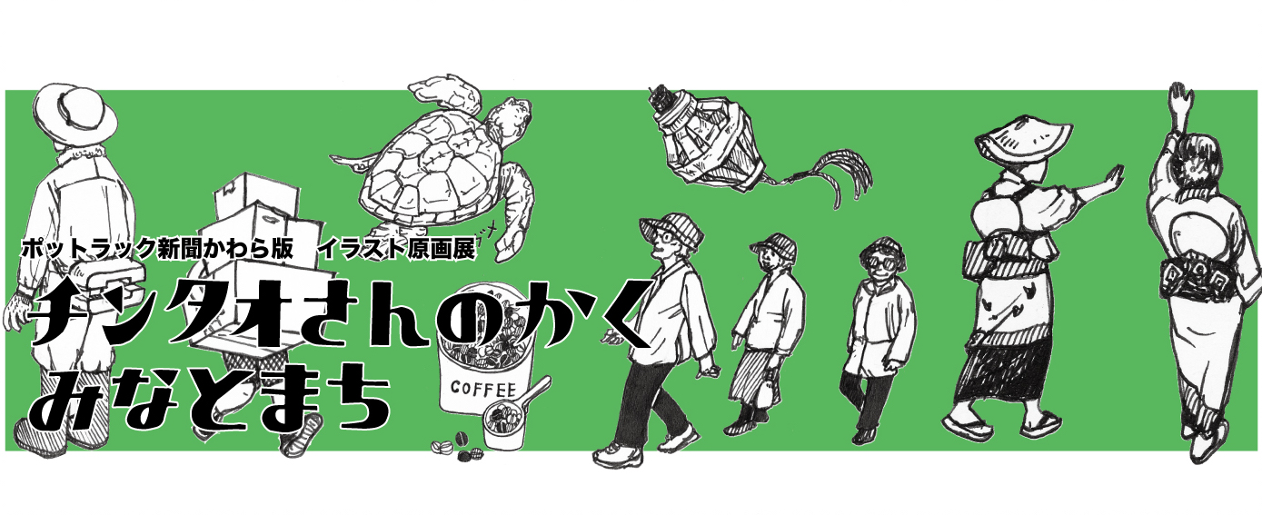 港まちでしか手に入らないローカルな新聞を彩ってきた、チンタオさんが描くイラスト原画をお披露目します。