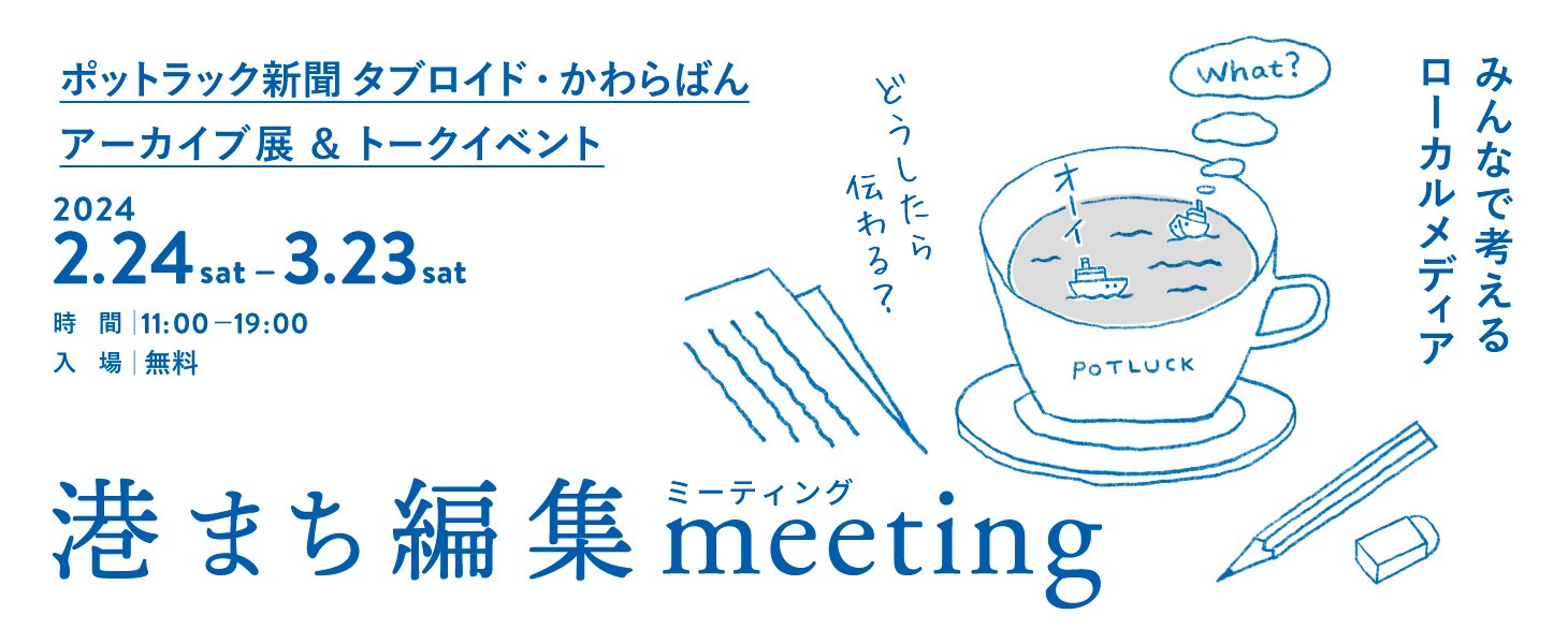 ポットラック新聞の編集長・竹内厚さんをお招きし、まちの人も外の人もみんなでテーブルを囲んで、「編集って?」「まちづくりって?」など、色々話してみたいと思います。会話へのご参加は自由ですので、聞くだけでのご参加も大歓迎です!