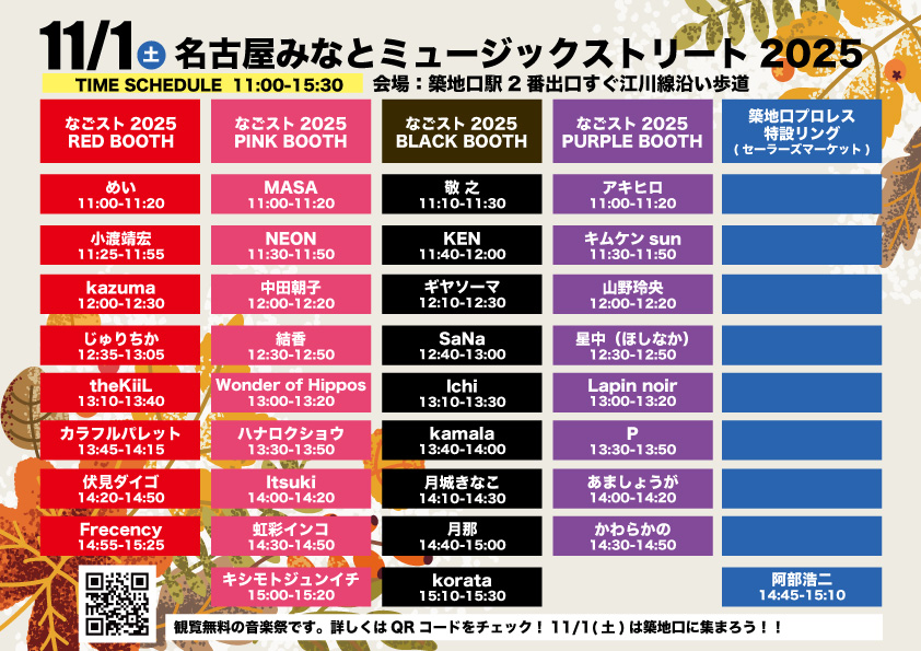 今年は会場を"築地口エリア"に移し、公園ではなく商店街がある街中でライブを行うリアルストリートライブに!2025年は"なごスト"の新しい挑戦です!