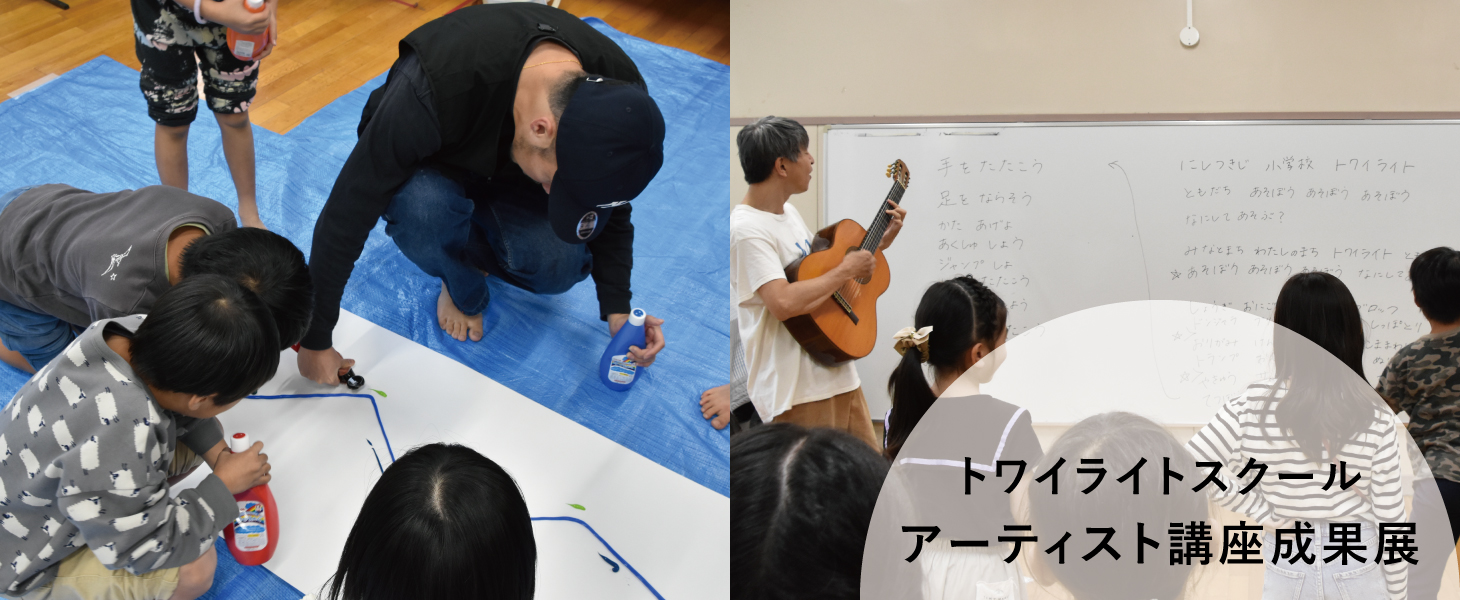 小学生とアーティストが様々な表現方法に取り組んできた成果発表展を開催します。放課後に児童が滞在する小学校併設のトワイライトスクールで、アーティストそれぞれの得意を活かした講座と児童の見守りを2022年度から行っています。