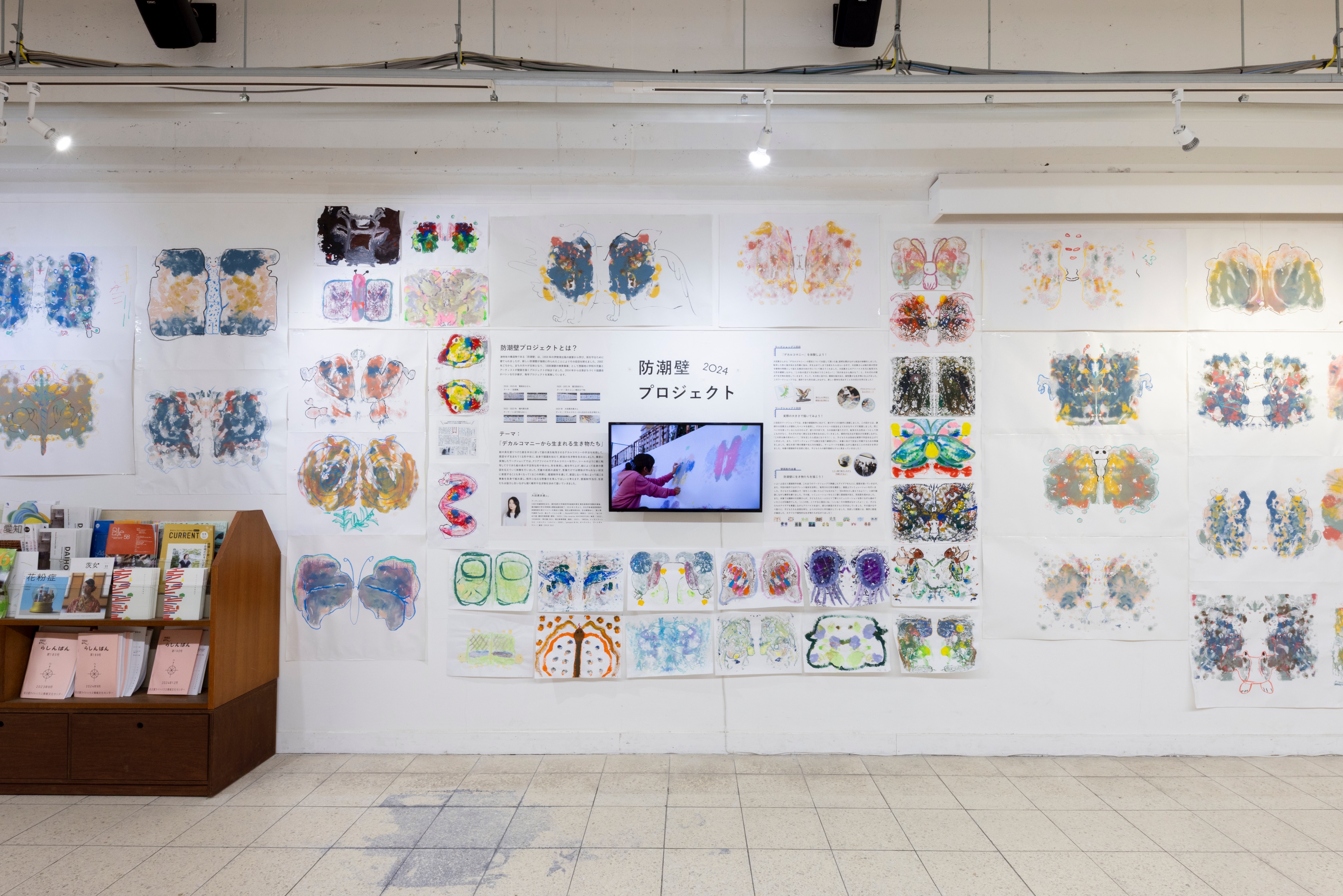 展覧会では、記録映像の上映・壁画の元となったワークショップでの制作物の展示を行います。