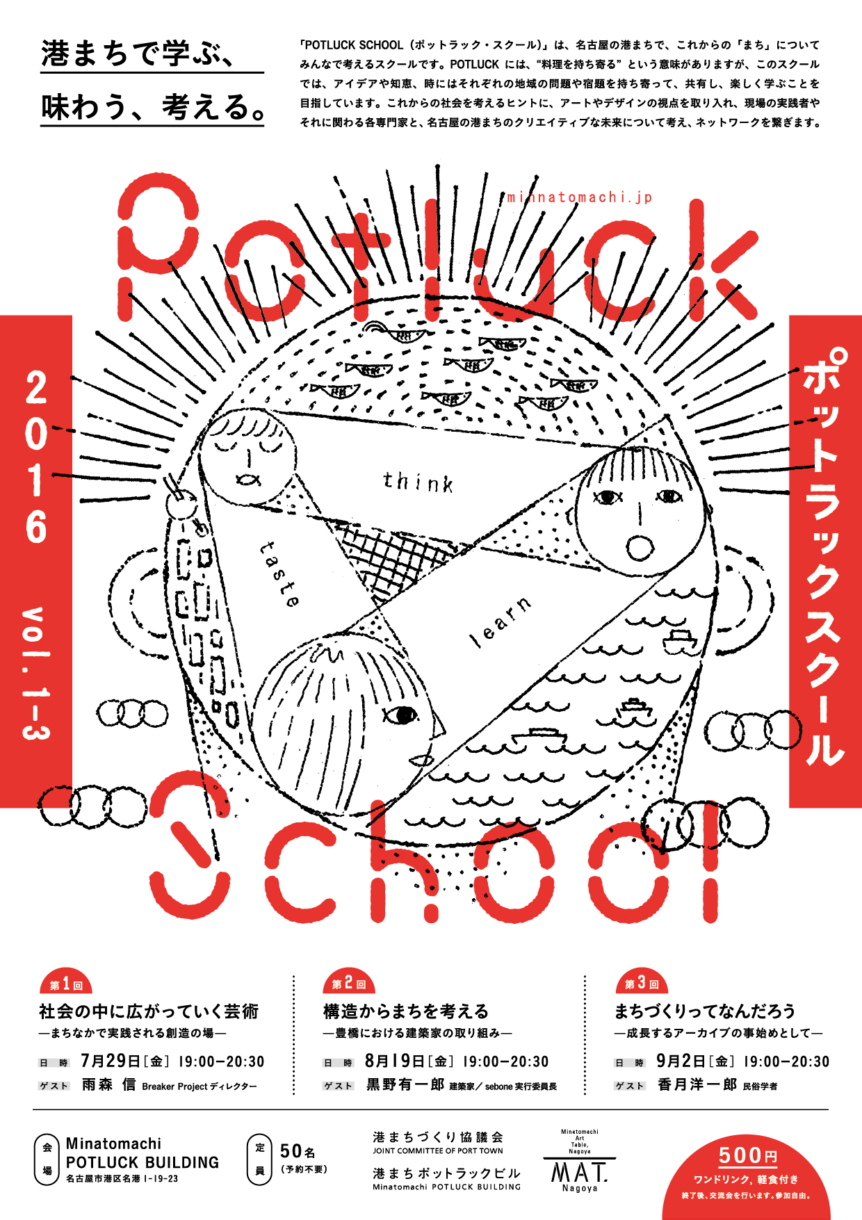 「POTLUCK SCHOOL (ポットラック・スクール)」は、名古屋の港まちで、これからの「まち」についてみんなで考えるスクールです。