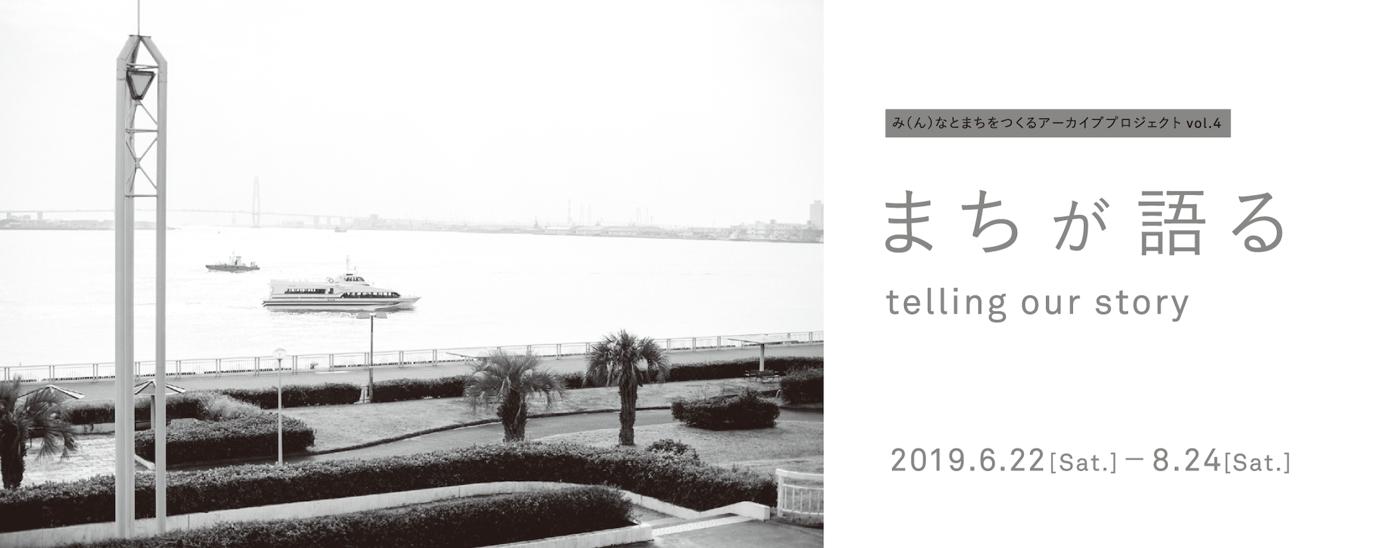 み(ん)なとまちをつくるアーカイブプロジェクトは、港まちに暮らす人々の個人的なエピソードを集積し、まちの新たな輪郭を記録するプロジェクトです。 さらに、その記録を成長させていくことで、現代の都市が「まちづくり」に向かうことの意味を問い直し、このまちの未来の姿を思い描くことを目的としてい ます。2016年の「まちと話す│talk with you」、2017年の「まちを解く│find your origin」、2018年の「まちを綴る│taste our tracks 」に続き、4年目となる2019年の今回は「まちが語る|telling our story」を展覧会のタイトルとしました。