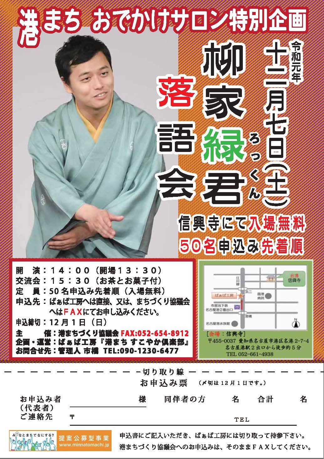【平成31年度提案公募型事業 第1期】ばぁば工房『港まち・すこやか倶楽部』港まちお出かけサロン特別企画です。
